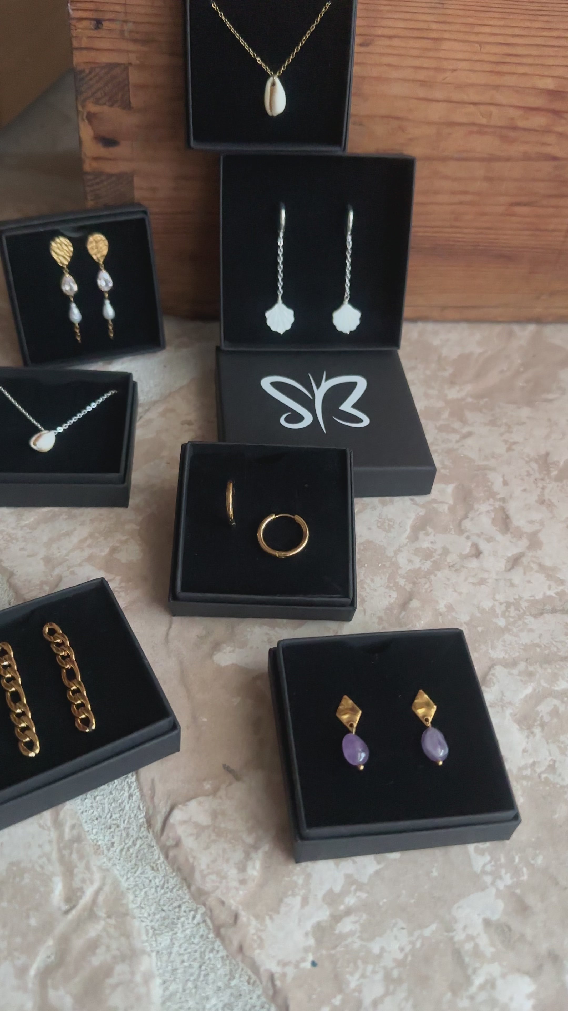 Jeg ønsker, at min indpakning skal være så miljøvenlig som muligt. Derfor er mine boblekuverter, visitkort og smykkeæsker lavet af FSC-certificeret genbrugspap og mine stempler af 40% plast fra produktionsaffald. Når du har åbnet din pakke er det også nemt for dig at sorterer; blot brug indpakningen igen, eller smid i papskraldespanden, så den kan gøre nytte igen <3